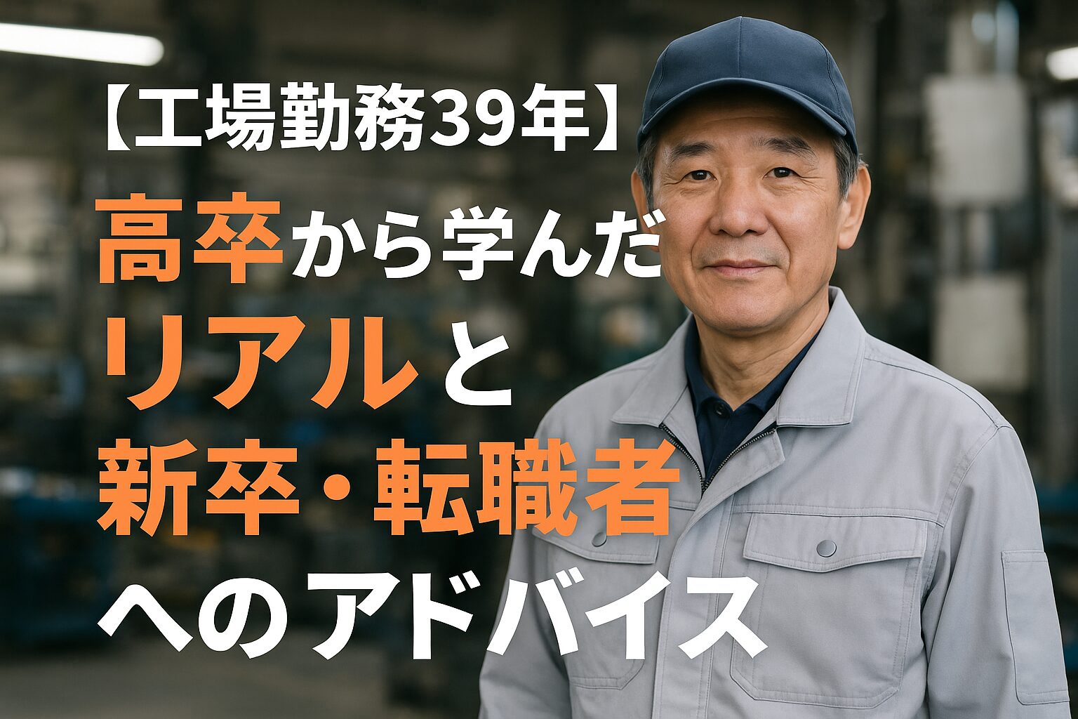 【工場勤務39年】高卒から学んだリアルと、新卒・転職者へのアドバイス 2025.11.16 工場勤務 じゅん 昭和から工場きんむ 30年経験してきた生産技術者が語る!工場を支える生産技術職とは? 2025.06.29 生産技術 じゅん 昭和から工場きんむ 【50代後半の実体験】定年まで数年、転職を決意した理由とその後 2025.04.27 転職 じゅん 昭和から工場きんむ
